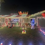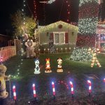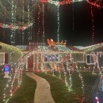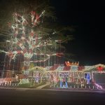 We’ve been doing Christmas lights for over 20 years. We picked a red and white candy cane theme and didn’t realize that it was going to grow into such a huge spectacle. Of course we started it on a much smaller scale with all the kids helping and while our family grew, so did our Christmas light display. Every year we added onto our display which includes a snow machine and our huge tree that lights up the whole neighborhood. There are 10,000 lights on the roof and 21,000 in the tree!!