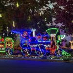 This is our 60th year for the 18 foot star on top of a 85 foot tree of lights that is seen from all of El Cajon valley just east of San Diego. Visitors enjoy over 85,000 lights all controlled by computer animation. This year over 1,500 pixels have been added to our 55 foot train sending smoke 30 feet in the air. The train seems to move through a NEW Railroad Gate Crossing and Winter Wonderland on its way to Santa’s Workshop. If visitors listen closely they can hear the sounds of the engine and train passing by.