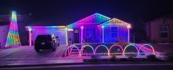 We turn the house into a gingerbread house and give out hot coco and Candy Canes!