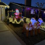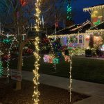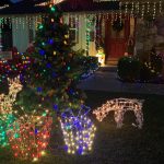 Our display has grown and changed over the years to what we have now. Each year there is something different. At this point we have well over 10,000 lights plus lasers and inflatables. Much of our display is synchronized to music broadcast on an FM channel so you can watch from the warmth of your car.