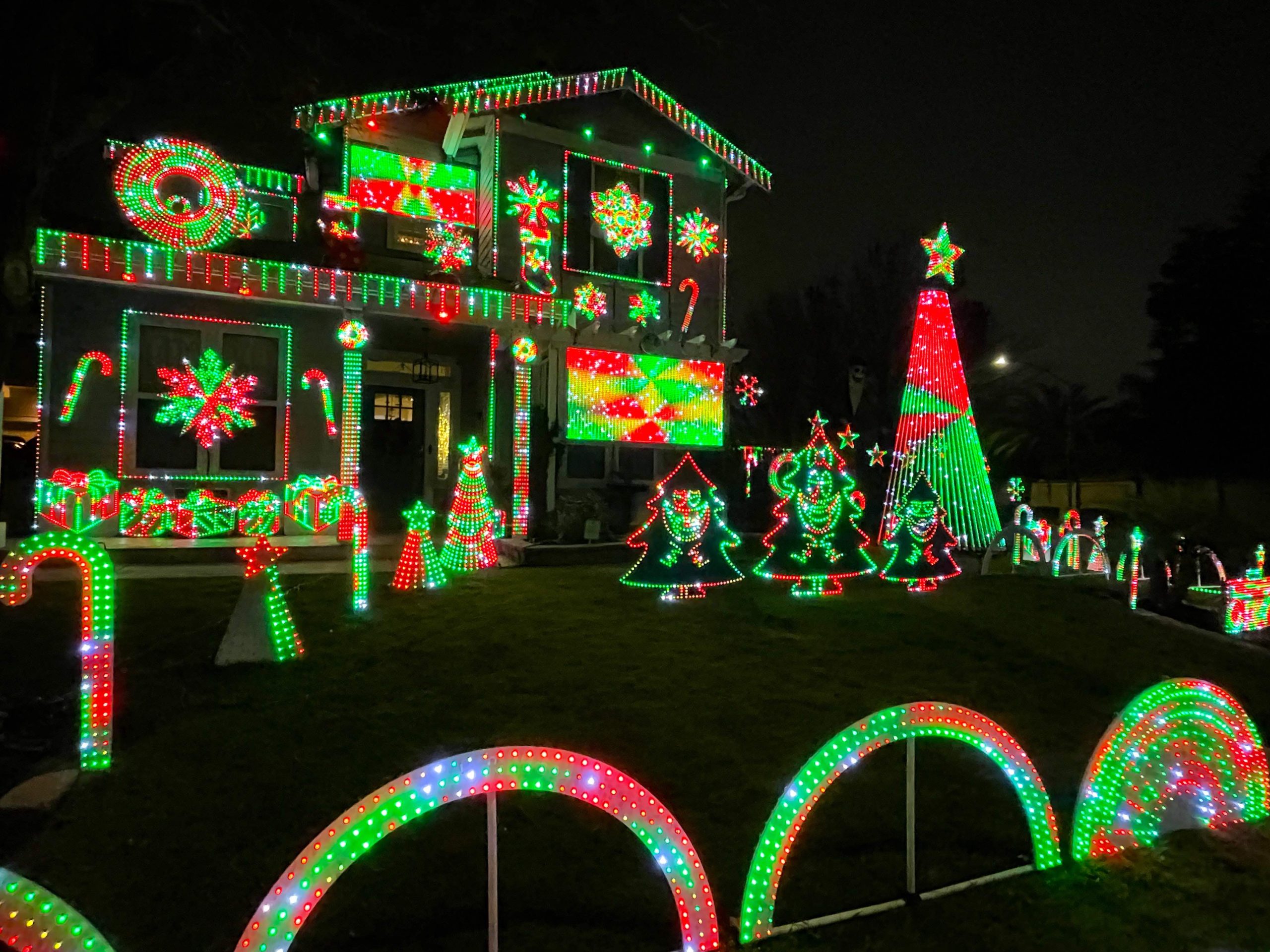 We feature lights synchronized to holiday music, with many different songs that are fun for everyone! Stop by and tune to FM 103.1 from your car or listen to the music from our yard. We hope you enjoy our family-friendly show!