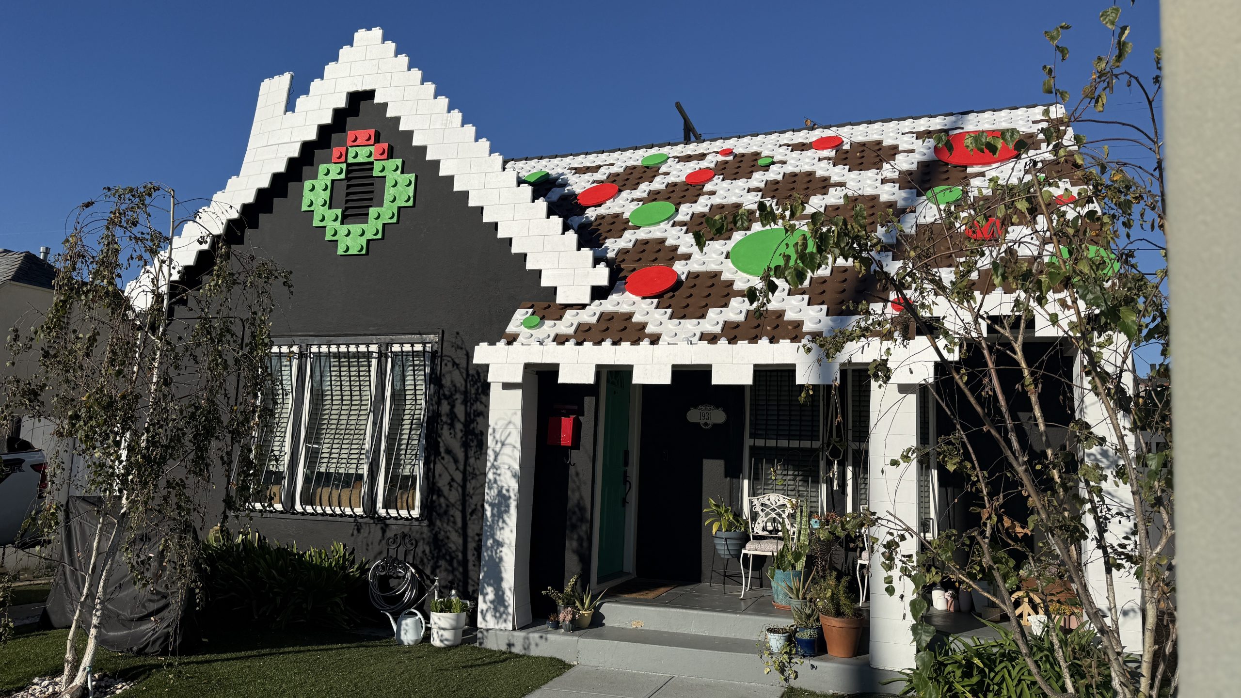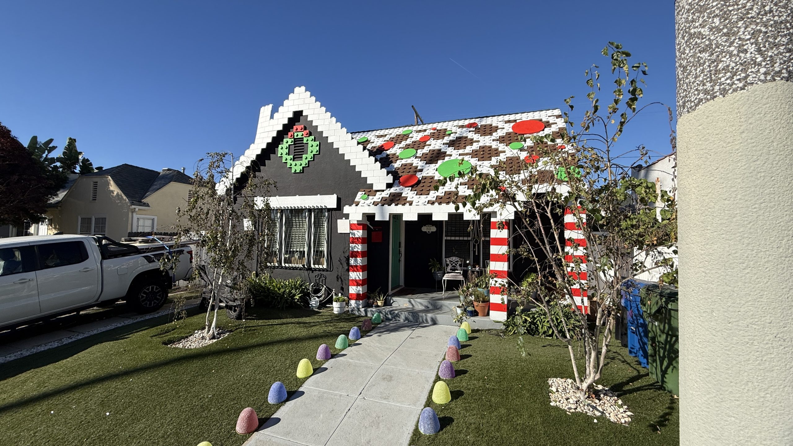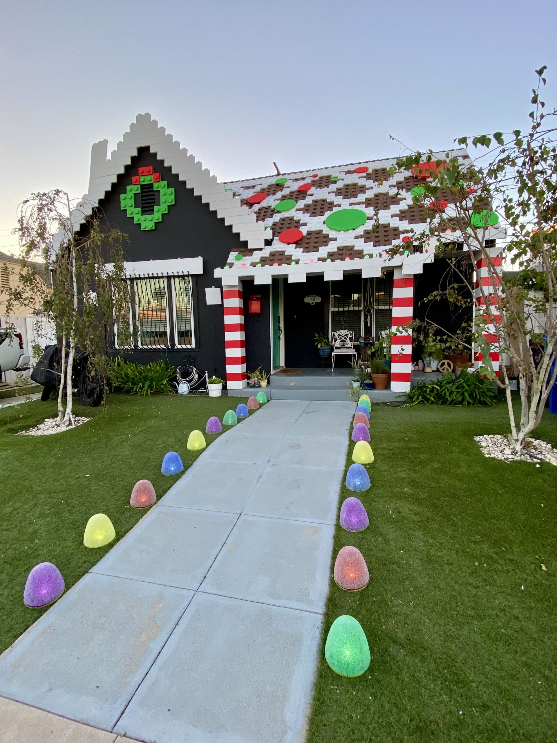 Classic LEGO inspired Gingerbread House. Features large scale handmade bricks that resemble Legos!