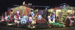 I began decorating the outside of my child hood home with my dad when I was 6. I helped him grow the display each year. When I moved out with my now wife, we have decorated at each stop. We have been on Lewis Way for 6 years, trying to add more each year. Our community has donated decor they do not use anymore, but wanted to see it still being used. I have decorations from my childhood. Since my dad has passed I honor him with our display. Our 6 year old serves hot cocoa on dedicated nights with a portion being donated to our local food bank. We love seeing the cars and faces come by each night. It’s a joy seeing the same people over the years!