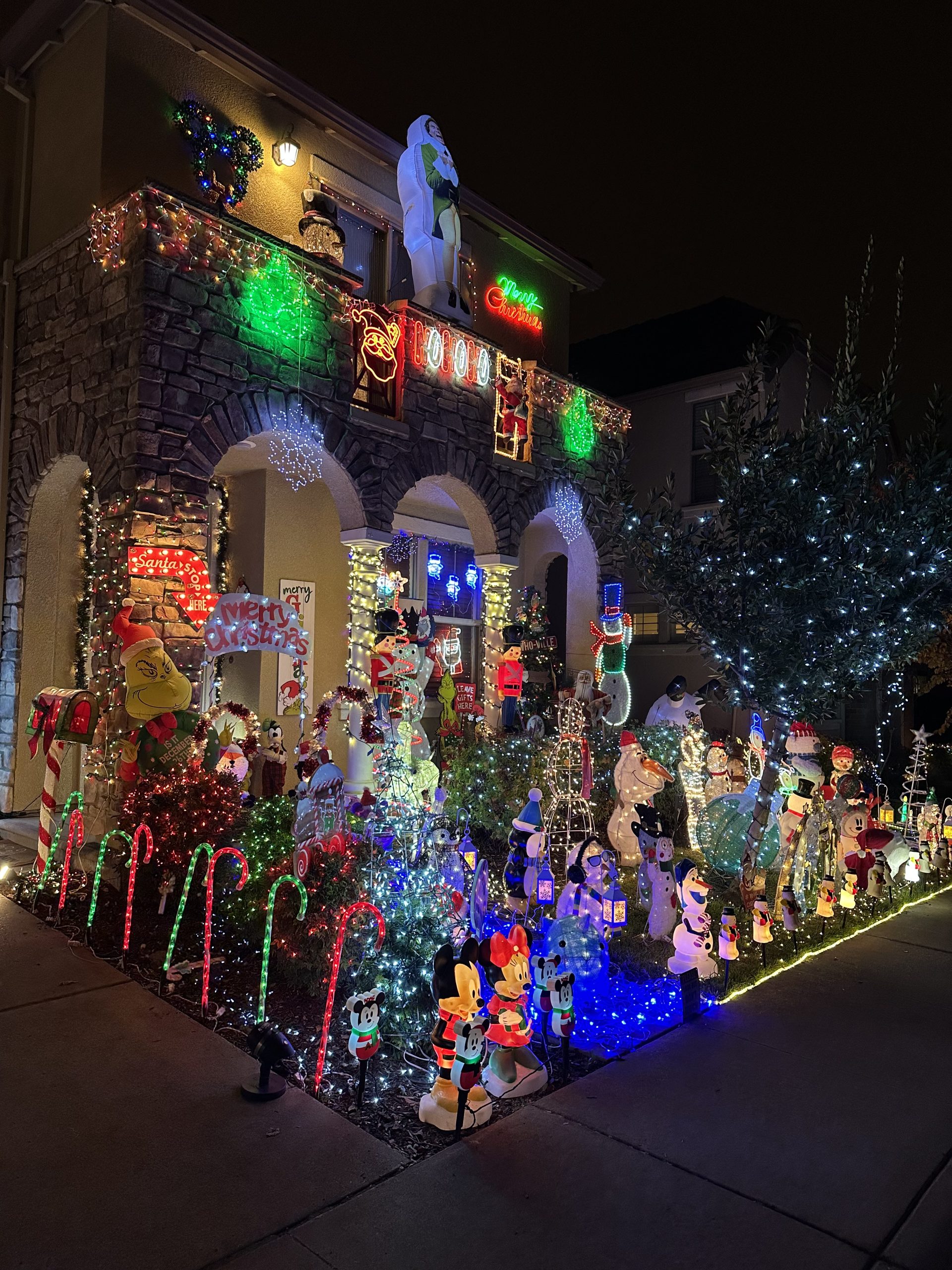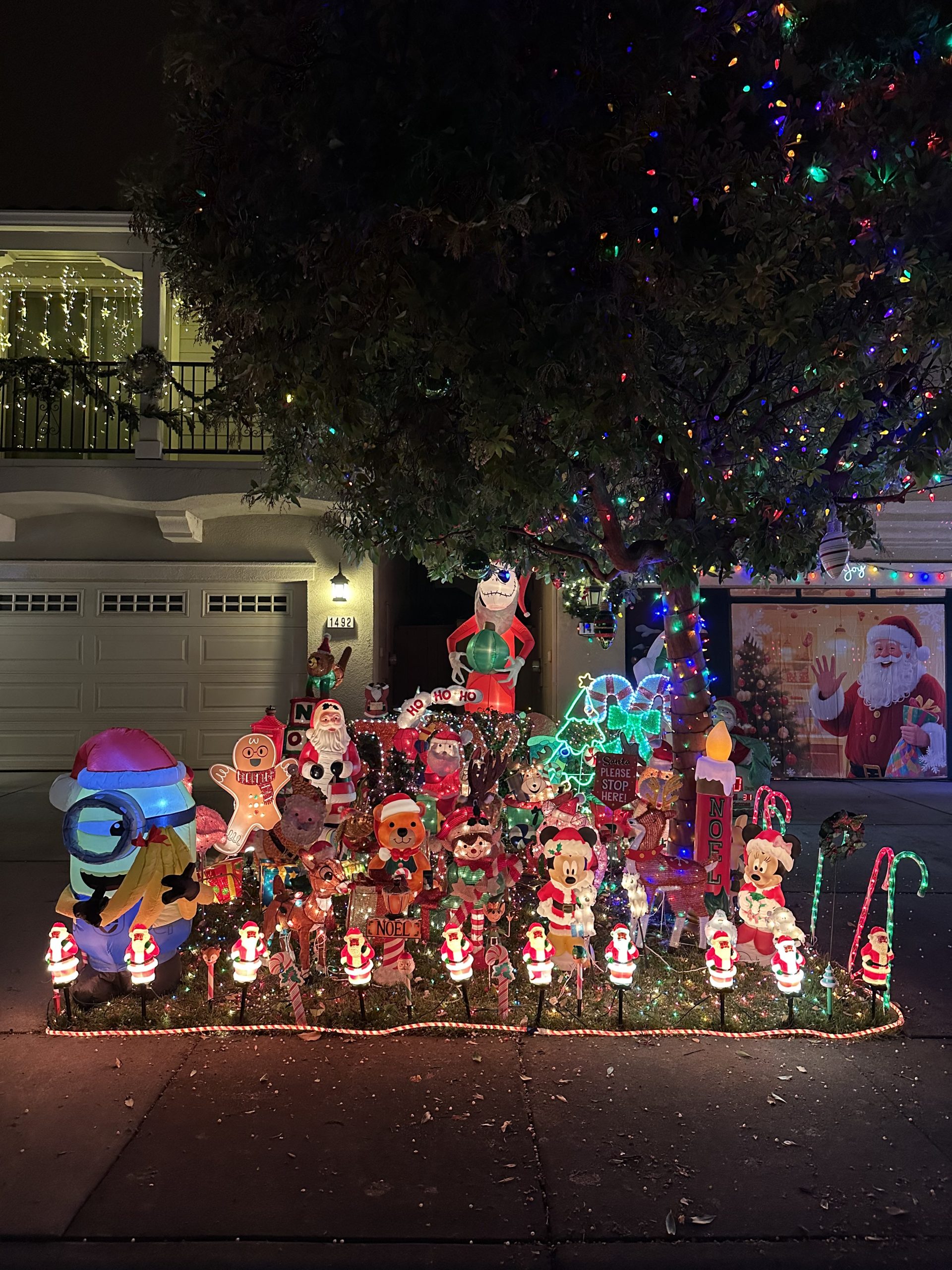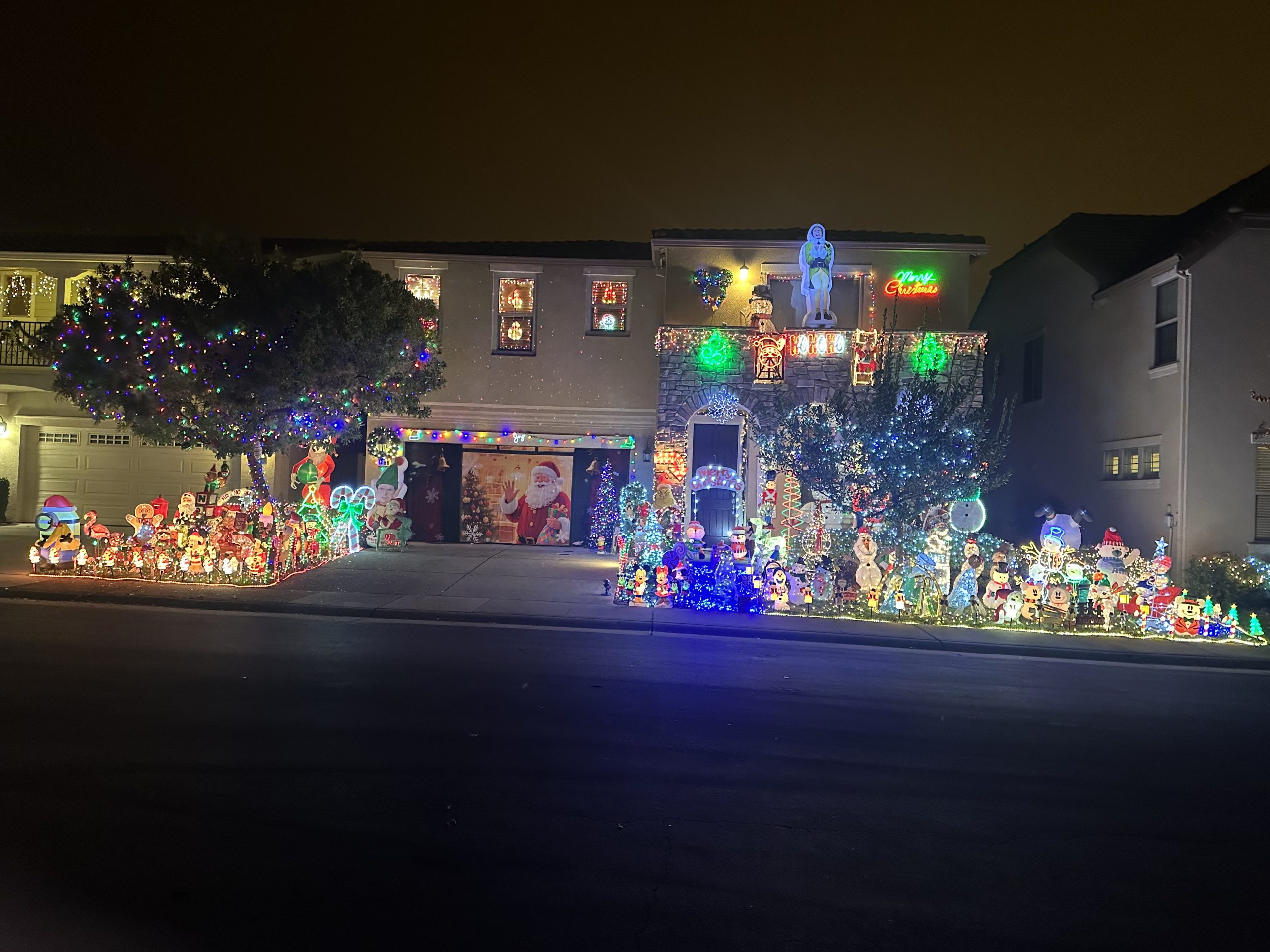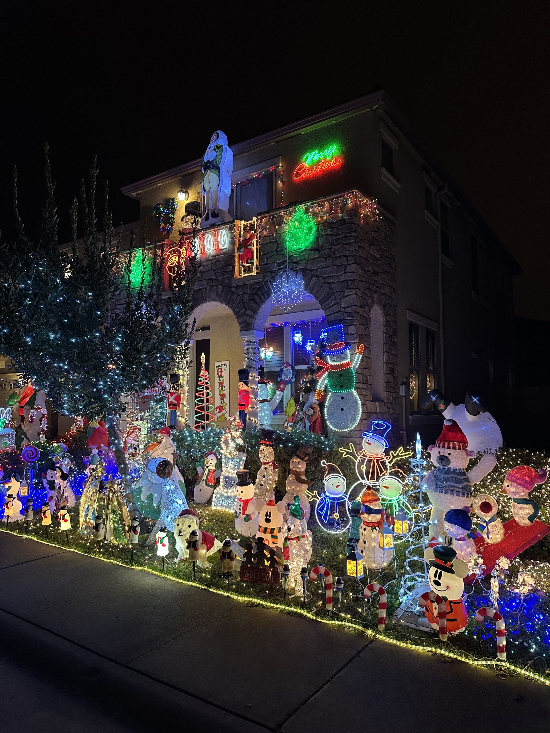 I began decorating the outside of my child hood home with my dad when I was 6. I helped him grow the display each year. When I moved out with my now wife, we have decorated at each stop. We have been on Lewis Way for 6 years, trying to add more each year. Our community has donated decor they do not use anymore, but wanted to see it still being used. I have decorations from my childhood. Since my dad has passed I honor him with our display. Our 6 year old serves hot cocoa on dedicated nights with a portion being donated to our local food bank. We love seeing the cars and faces come by each night. It’s a joy seeing the same people over the years!