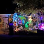 Welcome to The Nightmare Before Christmas house! This enchanting house blends the charm of Tim Burton’s classic with the festive spirit of the holidays. The yard is transformed into Halloween Town, complete with Jack, Sally, Oogie Boogie, and others. Each figure is meticulously crafted, bringing the eerie yet endearing world of the movie to life. As night falls, the magic begins. The house is illuminated with a dazzling display of choreographed lights, perfectly synchronized to the movie soundtrack. Tune in to 107.9FM to experience the full effect. The music fills the air and the lights dance in perfect harmony captivating both young and old. So, grab your family and friends and let the enchantment of this extraordinary display fill your hearts with wonder and joy.