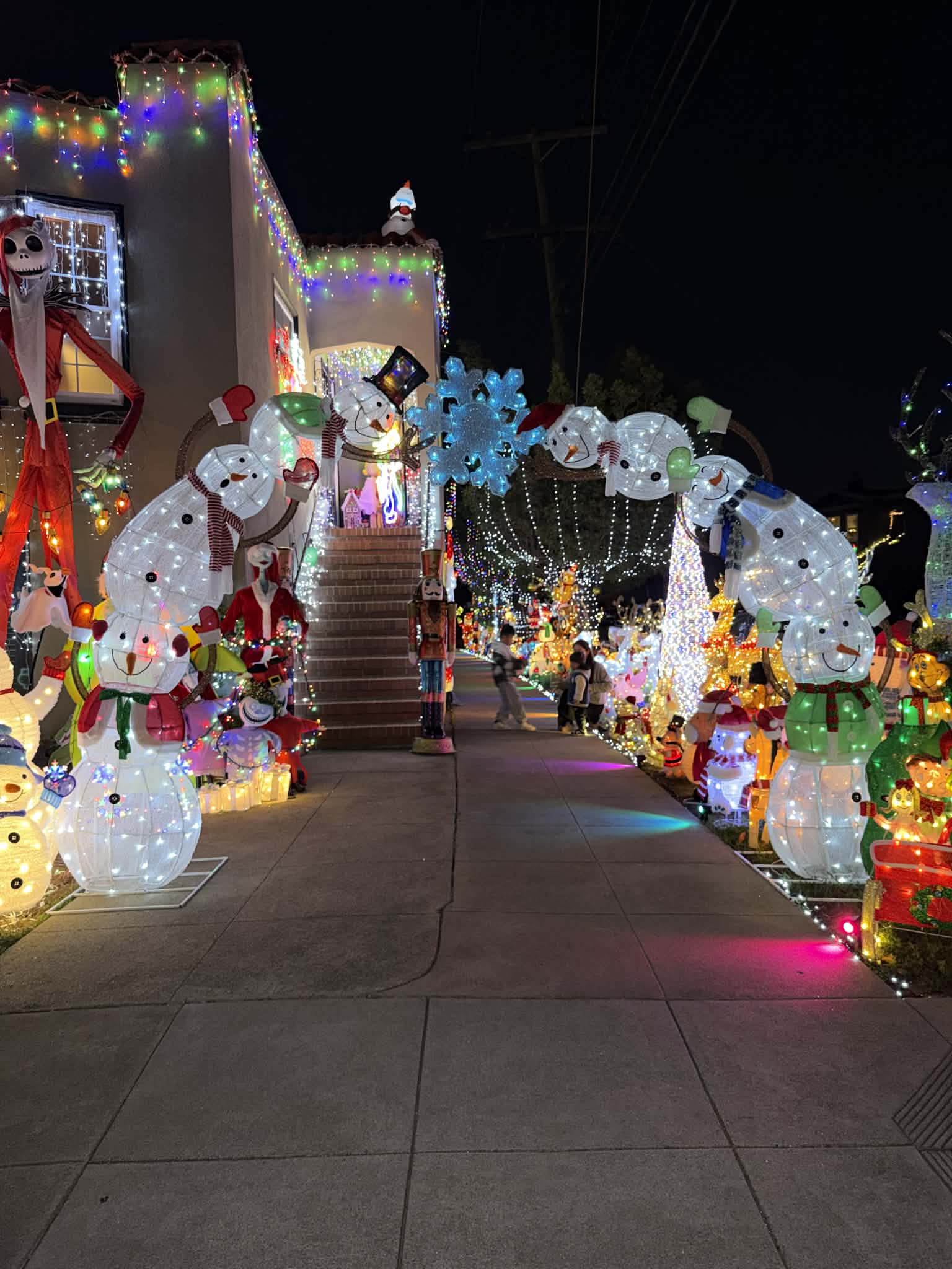 Our family loves Christmas and has been decorating for decades. We went all out with the decorations in December 2020 during COVID to lighten and bring joy the neighborhood during the pandemic. Our Christmas decorations brought smiles to everyone who walked or drove by. Since then, our neighbors wait each year with anticipation and wondering what the display will look like the following year. In 2021 we decided to have our first “Annual Light Ceremony” which drew more and more crowds each year. Our annual light ceremony happens every year the Saturday after Thanksgiving at 6pm. We have hot chocolate, water, mulled wine, hotdog stand and more during the event! Come by to enjoy our festive decorations that bring much joy to all.
