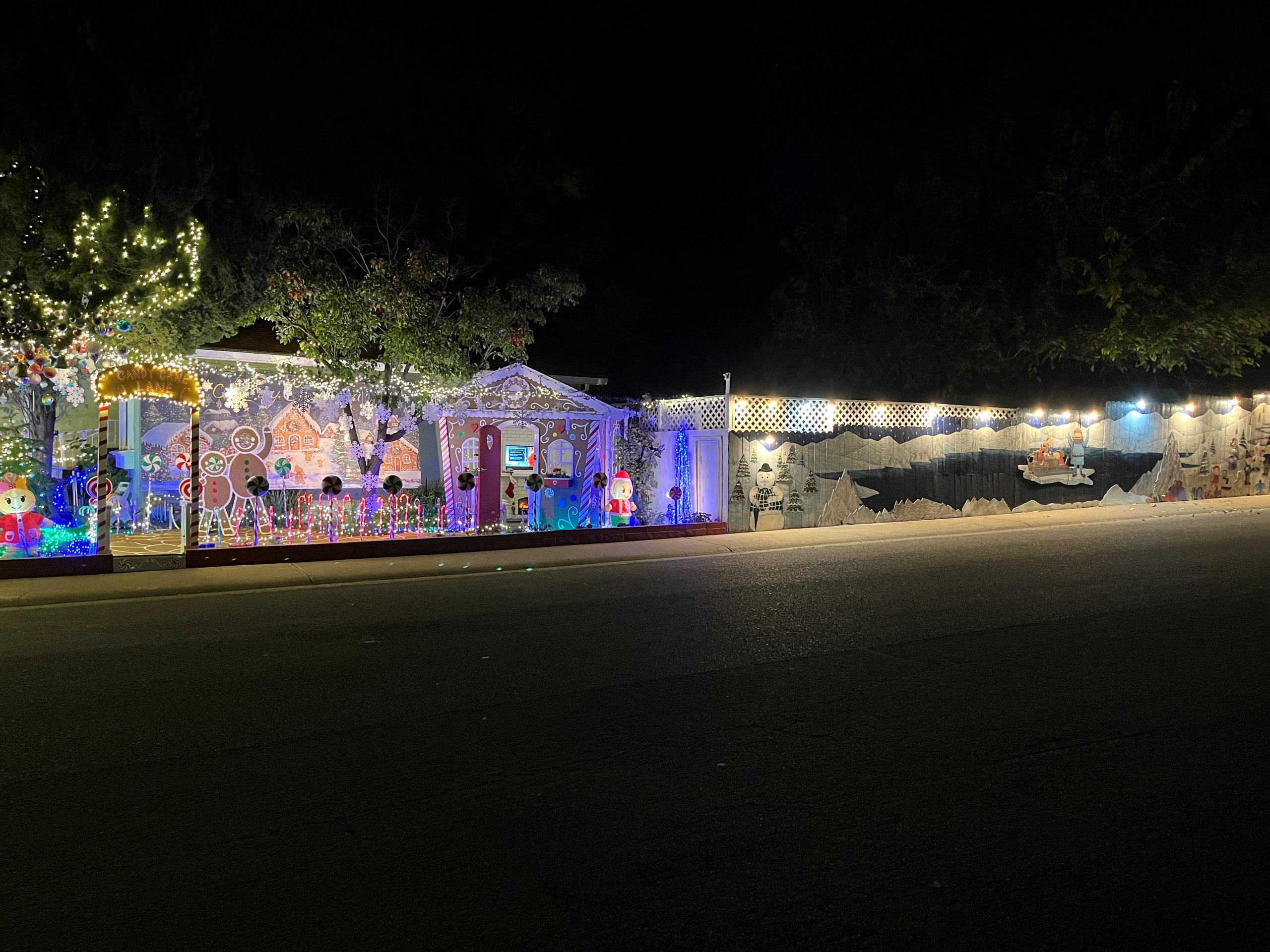 We have included an immersive experience for people to enjoy with their families – there is a gingerbread house where people can watch Christmas movies with their families, as well as full-sized gingerbread people cutouts where people can take photos. There are approximately 25,000 to 30,000 lights, a Victorian village, a mural on the fence, snowflakes and ornaments in the trees, as well as other features. Please come and enjoy it and Merry Christmas!