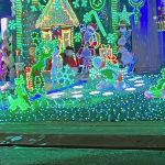 We have over 20 different Christmas songs for all ages. We have 2 scenes with ice rinks with characters. We have thousands of lights they cover the display. Most props have been handmade drawn no projectors are used. We recycle and reuse as much as possible, it’s a labor of love. There is even a snow coming down during the breaks. We are Mike and Rhonda Wright we’ve been married 51 years and have been decorating the yard ever since. Come see us you won’t be disappointed.